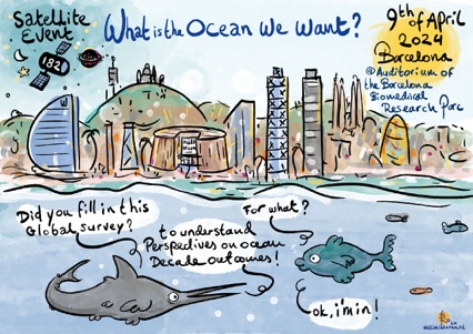 Illustrations by Bass Kohler from the SmartNet ‘Ocean We Want Survey’ side event at the UN Ocean Decade Conference in Barcelona, Spain, April 2024.